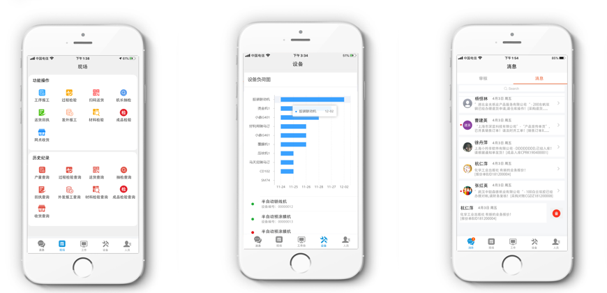 通过工作平台,车间工作人员可以实时接收到生管或者调度人员指派的生产任务,并可检视该区域的生产信息、设备信息、物料、生产任务、生产履历等现状情况,也可进行报工、上下工、上料、首检、ESOP检视等等作业,实现生产工单的透明化生产记录的无纸化,缩短交货周期,提高准时交货率。
